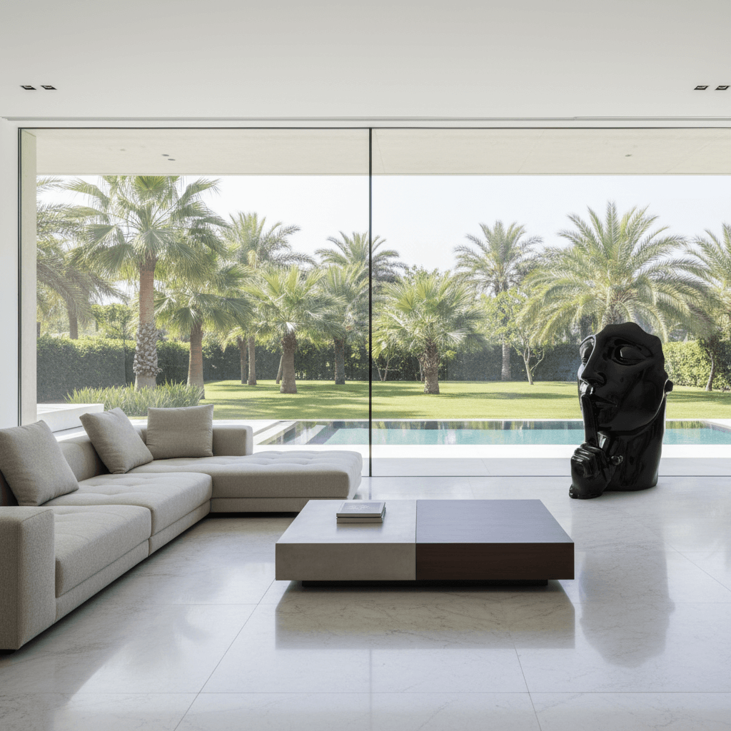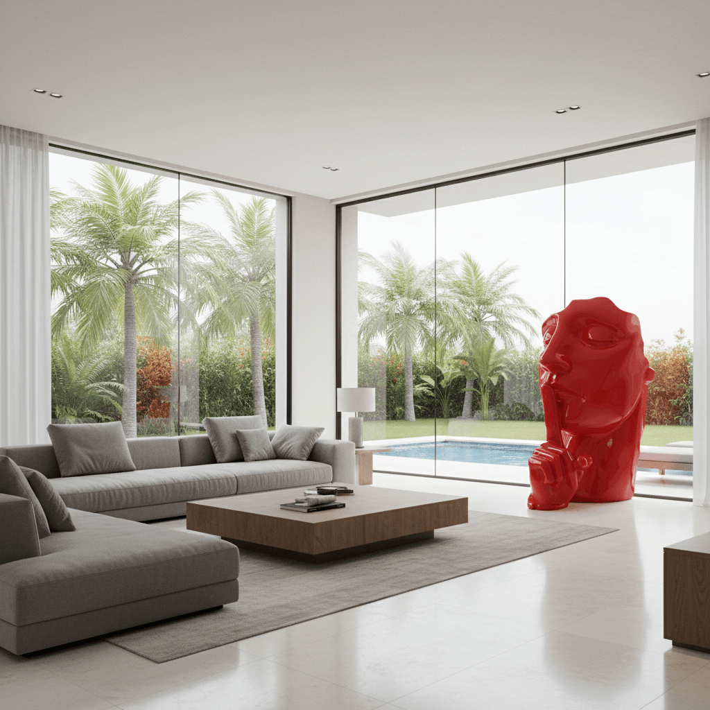 With its elongated proportions, smooth surfaces and stylised facial features, it feels like a gallery piece designed to create impact in modern interiors, villas, hotels and architectural spaces.